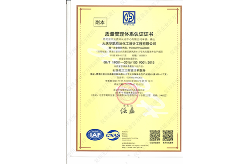 我公司具有化工工程專(zhuān)業(yè)甲級,石油及化工產(chǎn)品儲運、煉油工程、管道輸送、油田地面、制漿造紙工藝、城鎮燃氣工程、建筑工程乙級設計資質(zhì),石化、建筑乙級咨詢(xún)資質(zhì),并通過(guò)了ISO9001質(zhì)量管理體系的認證、環(huán)境管理體系認證和職業(yè)健康安全管理體系認證,具有Ⅰ、Ⅱ、Ⅲ類(lèi)壓力容器設計資格證及壓力管道設計資格證。
